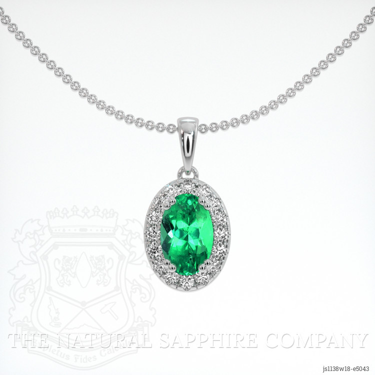 Introducing the exquisite emerald pendant from The Natural Emerald Company, a true embodiment of elegance and sophistication. This jewel is crafted meticulously from 18K white gold, providing an exquisite setting that complements the vibrant beauty of the gemstone it holds. The centerpiece of this pendant is a resplendent 0.78 carat oval-shaped green emerald. Sourced from the mystical lands of Russia, its origin is as rare and remarkable as its appearance. This emerald dazzles with an intense color saturation that can only be described as entrancing, while featuring the finest qualities of a mixed brilliant cut. Its dimensions, 7.57 by 4.88 by 3.84 mm, lend an ideal balance—poised and prominent yet suitable for everyday luxury.