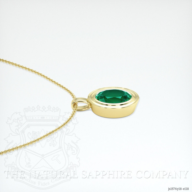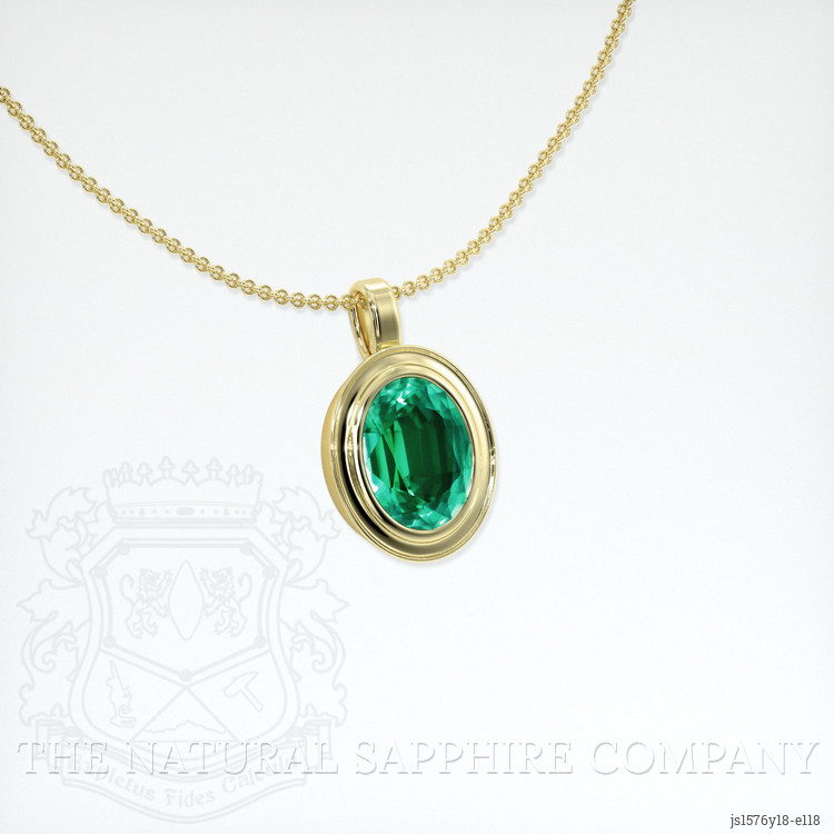 The Natural Emerald Company proudly presents a singular piece of fine jewelry, where craftsmanship meets natural beauty. Our pendant is meticulously set in 18K yellow gold, a classic and timeless choice that enhances the luminescent quality of the piece. The centerpiece is a stunning 1.86 carat oval-shaped emerald, sourced responsibly from the rich terrains of Zambia. With dimensions measuring 9.13 x 7.29 x 4.56 mm, this emerald is cut with a mixed brilliant technique, ensuring that each facet is optimally positioned to reflect light and showcase its inherent vibrancy.