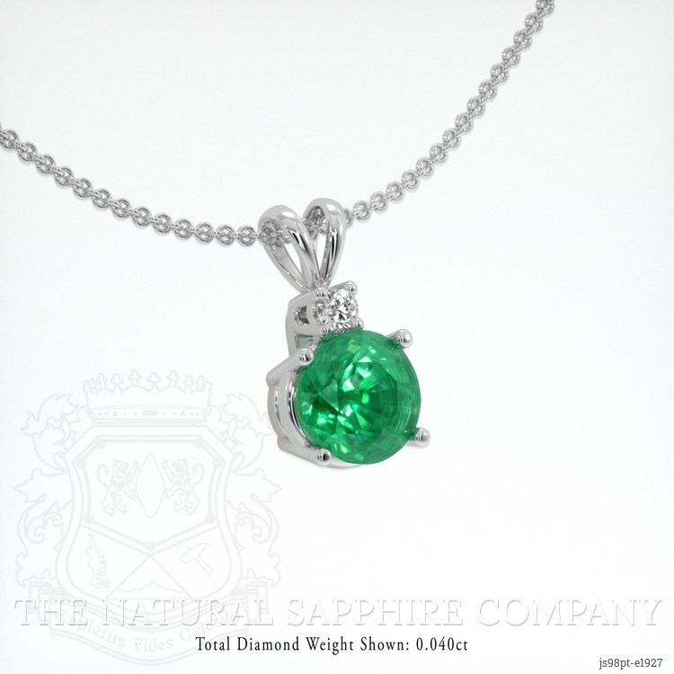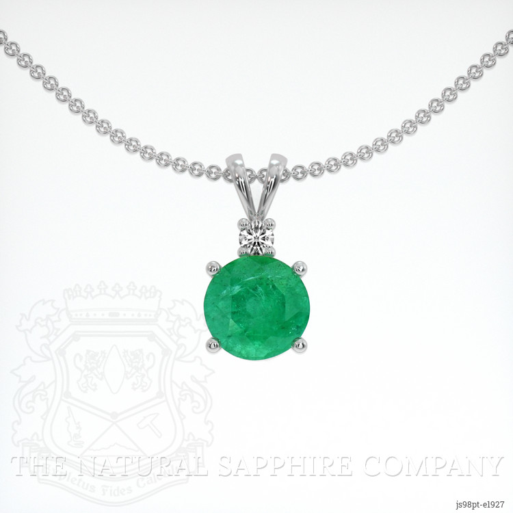 Introducing the exquisite emerald pendant from The Natural Emerald Company, an epitome of sophisticated elegance and masterful craftsmanship, set entirely in premium platinum 950. The centerpiece of this pendant is a stunning 0.97 carat emerald, sourced from the rich, emerald-abundant fields of Zambia, known for producing gemstones of remarkable color and quality. With precise dimensions of 6.24 x 6.11 x 4.80 mm, the emerald is cut into a round shape that exhibits a mesmerizing mixed brilliant cut, enhancing its intense color saturation and excellent polish. This emerald, with a clarity grading of very slightly included, reveals minute inclusions only visible upon close inspection, thereby maintaining the stone’s remarkable transparency and brilliance.