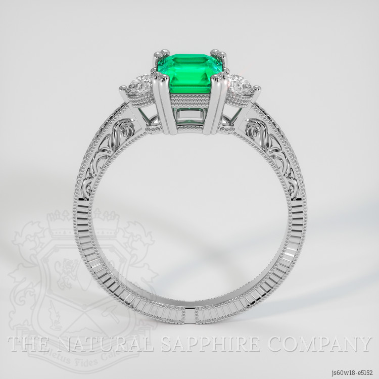 Antique Style Emerald Ring 0.85 Ct., 18K White Gold