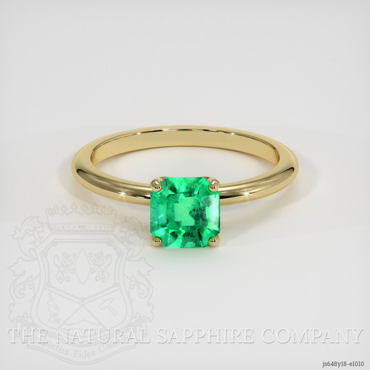 Solitaire Emerald Ring 0.89 Ct., 18K Yellow Gold