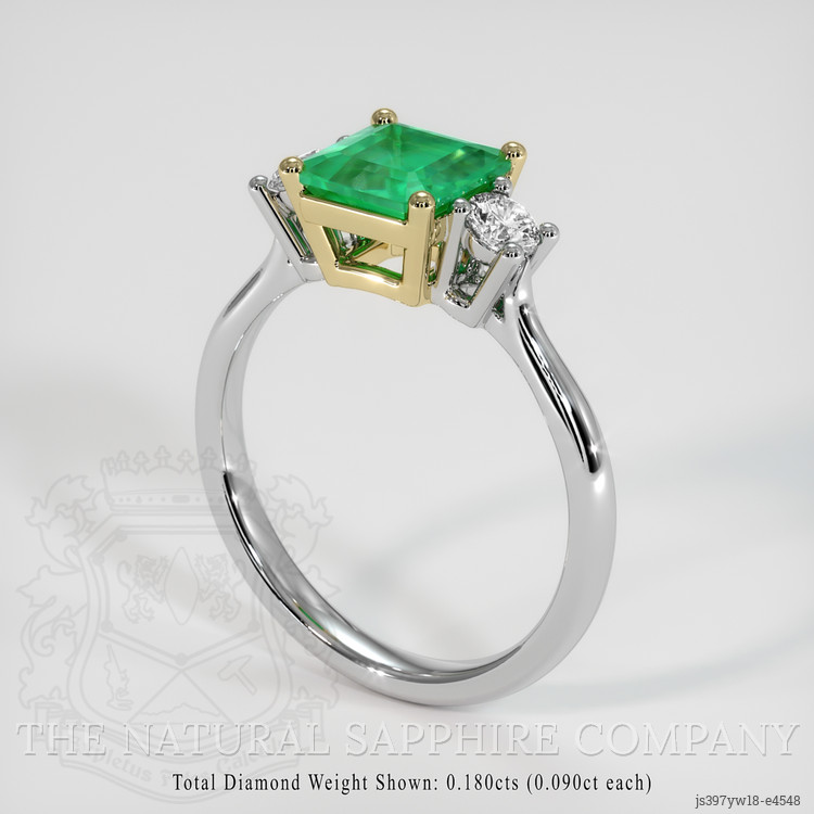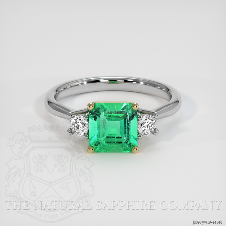 Three Stone Emerald Ring 0.94 Ct., 18K Yellow & White