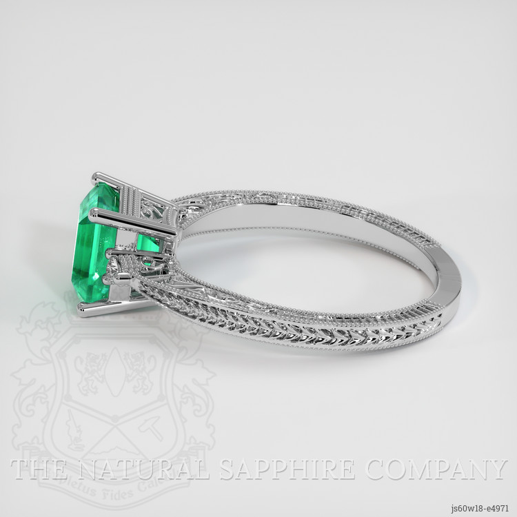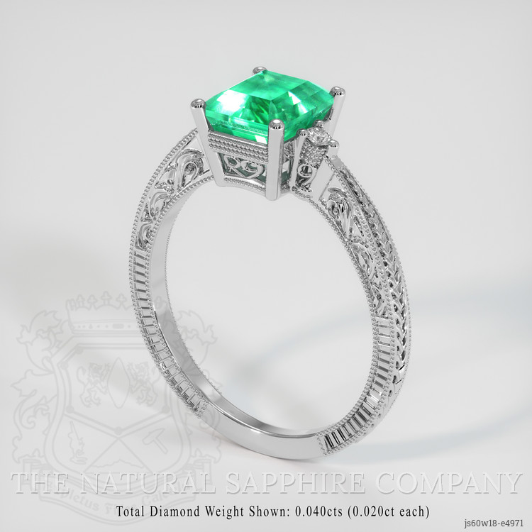 Antique Style Emerald Ring 1.46 Ct., 18K White Gold