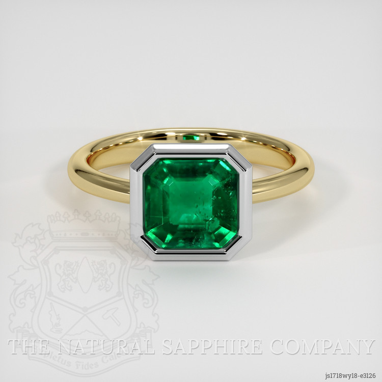 The men's ring features a beautiful, transparent 1.48 carat asscher, octagon shape green emerald with the dimensions of 7.42 x 7.29 x 4.31 mm and an asscher cut. It has a clarity grade of very slightly included, evaluated at eye level, vivid color saturation, and an excellent polish. The origin of this emerald is Zambia. The rich history and timeless nature of this gemstone bring a unique appeal to the piece, making it an ideal choice for those who value tradition and legacy. The emerald's Zambian origin adds to its allure, as Zambia is known for producing some of the most exquisite emeralds in the world, renowned for their vivid green color and exceptional quality. The 18K white gold and 18K yellow gold setting perfectly complements the emerald, creating an elegant and classic design. The combination of these precious metals highlights the gemstone's beauty and enhances its natural brilliance. This ring not only embodies elegance and sophistication but also carries a rich heritage that adds to its timeless charm. It is a magnificent testament to the enduring appeal of fine gemstones and the artistry involved in creating a piece that can be cherished for generations.