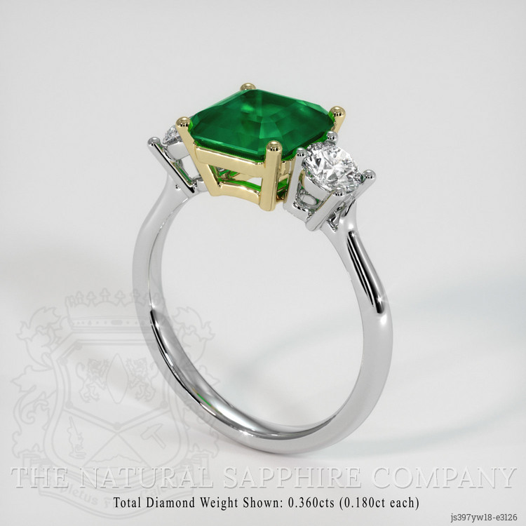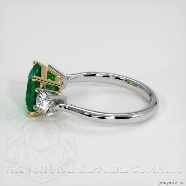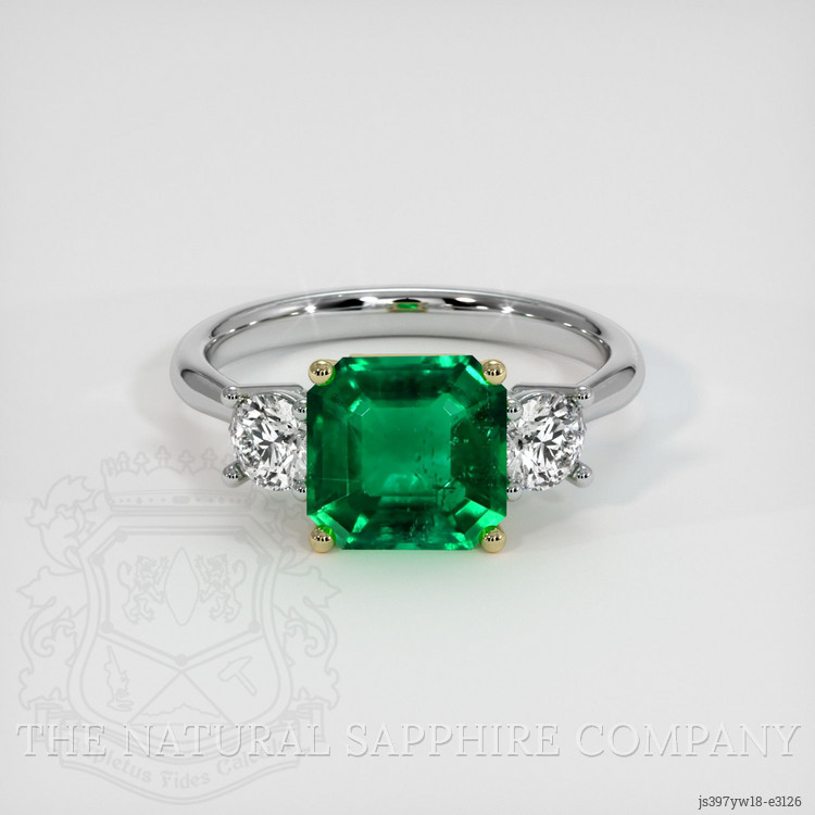 Three Stone Emerald Ring 1.48 Ct., 18K Yellow & White