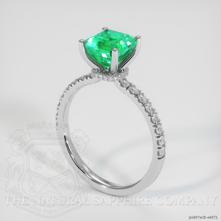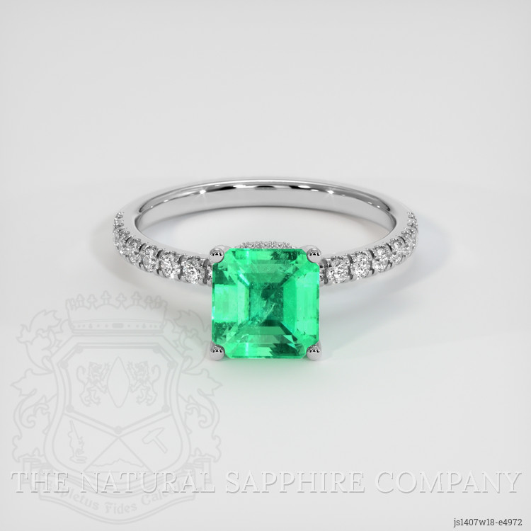Pave Emerald Ring 1.57 Ct., 18K White Gold