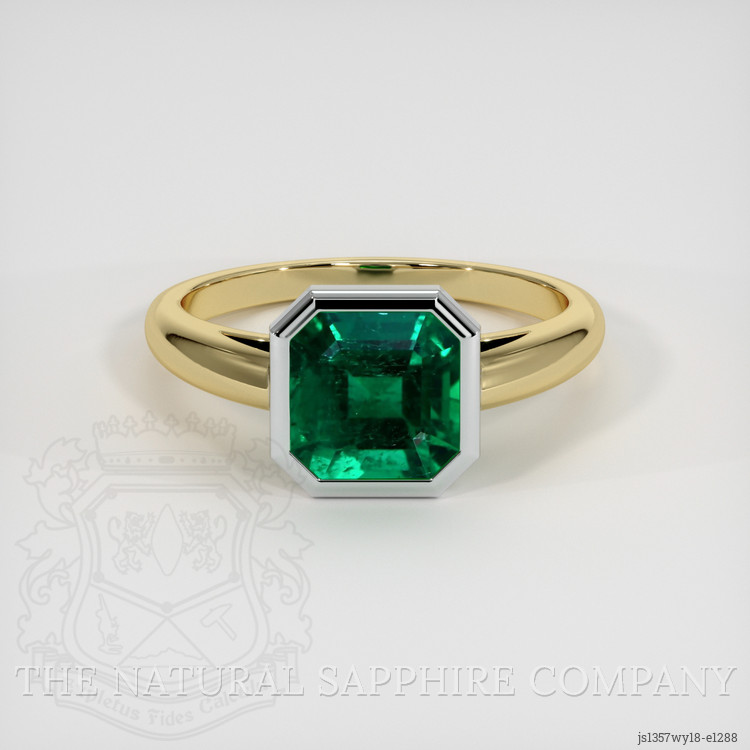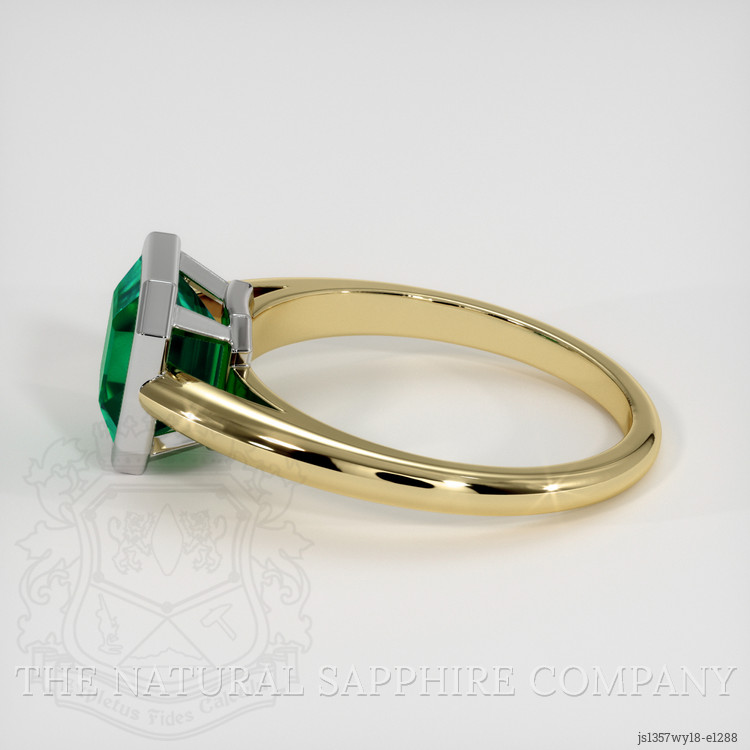 Setting this extraordinary emerald is a band crafted from 18K white gold and 18K yellow gold, providing a stunning and complementary backdrop that accentuates the emerald's vibrant hue. The contrast between the rich yellow gold and the sleek white gold attracts admiration and highlights the gemstone with an understated elegance.