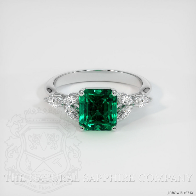 Accent Stones Emerald Ring 1.93 Ct., 18K White Gold