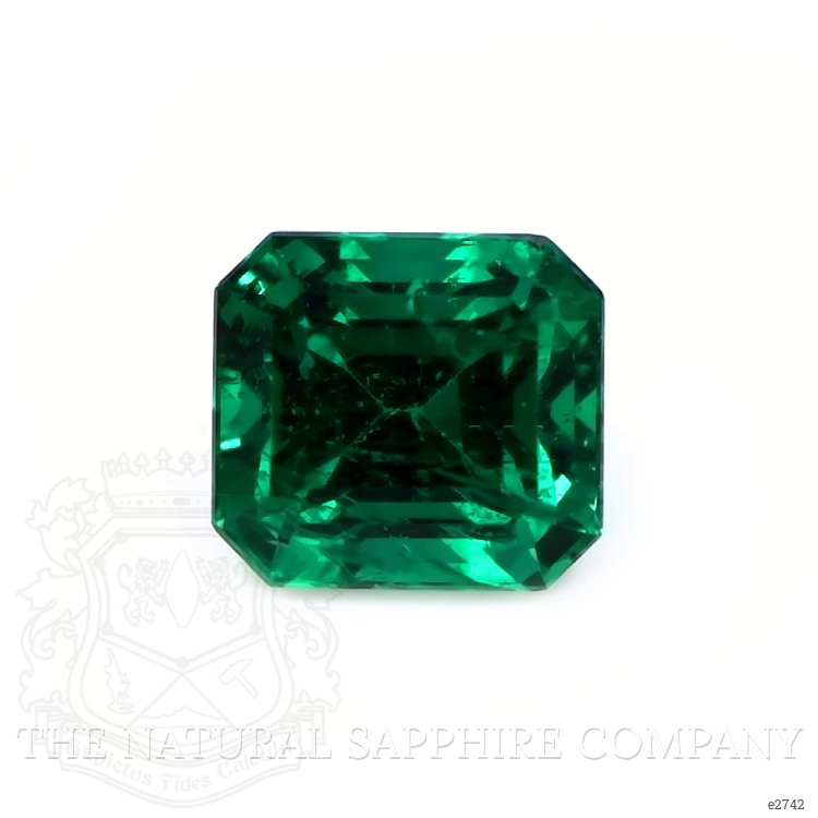 The ring features a beautiful, transparent 1.93 carat asscher - octagon shape green emerald with the dimensions of 7.36 x 6.69 x 5.91 mm and a asscher cut. It has a clarity grade of very very slightly included (evaluated at eye level), vivid color saturation, and an excellent polish. The origin of this emerald is Zambia.