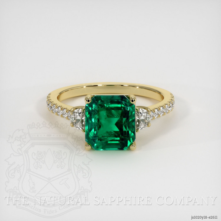 Three Stone Emerald Ring 2.79 Ct., 18K Yellow Gold