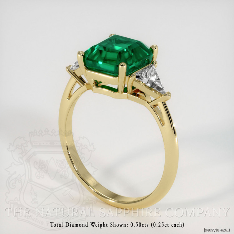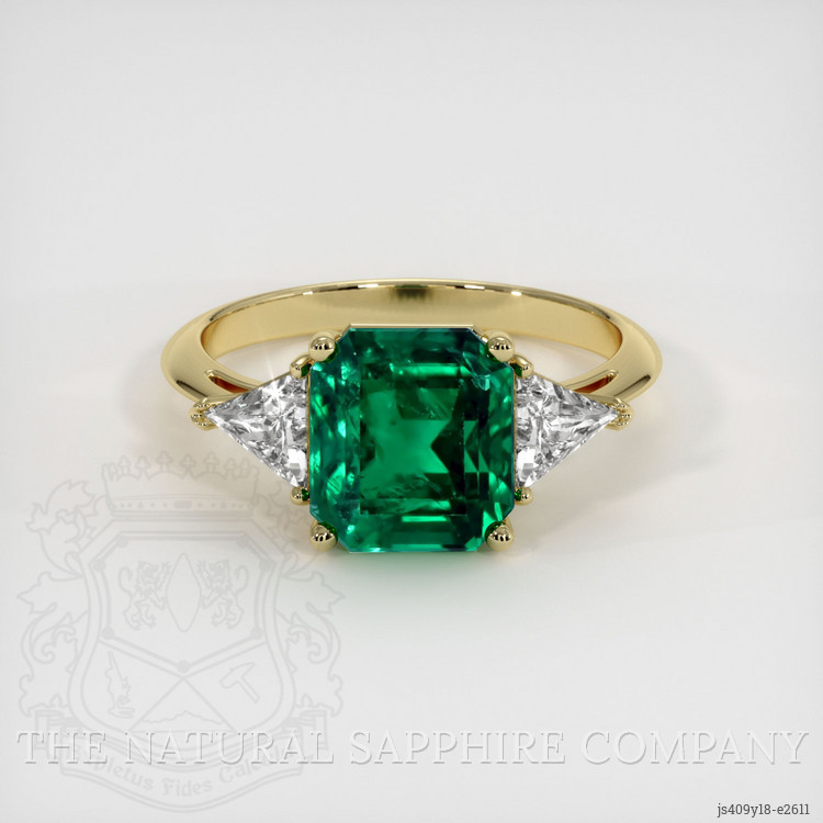 Three Stone Emerald Ring 2.79 Ct., 18K Yellow Gold