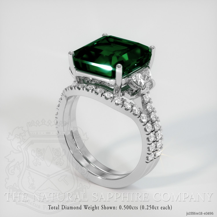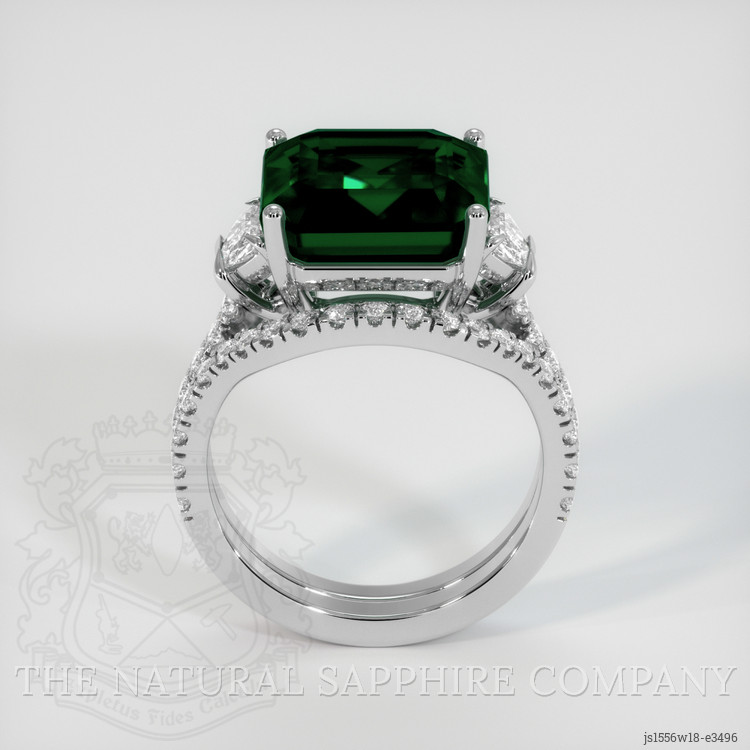 Three Stone Emerald Ring 6.60 Ct., 18K White Gold