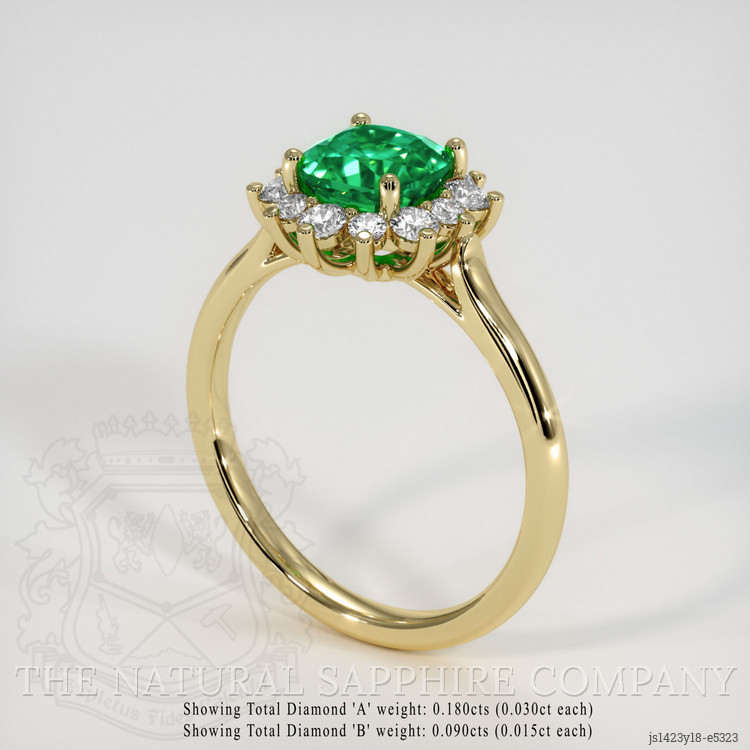 Set in the warmth of 18K yellow gold, this ring achieves a perfect balance, combining classic design with contemporary allure. The lustrous gold band enriches the visual harmony between the vibrant emerald and the sparkling diamonds. Each element of this ring is hand-selected and crafted with precision, reflecting The Natural Emerald Company's commitment to excellence and luxury. The use of such premium materials ensures that this ring doesn't merely adorn the hand but becomes a part of the wearer’s story, a piece to treasure and pass down through generations.