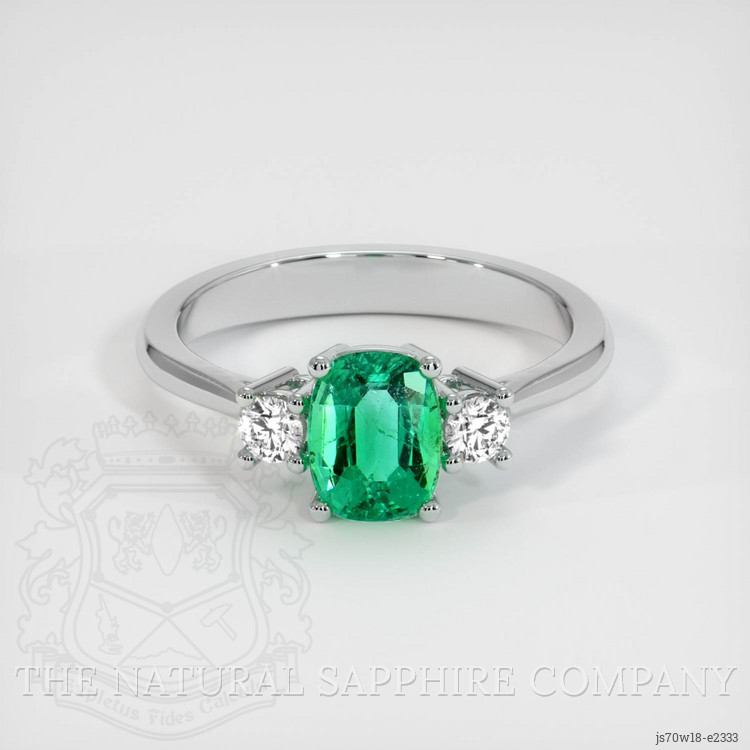 Three Stone Emerald Ring 0.97 Ct., 18K White Gold