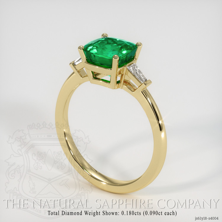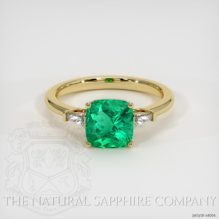 Three Stone Emerald Ring 1.57 Ct., 18K Yellow Gold