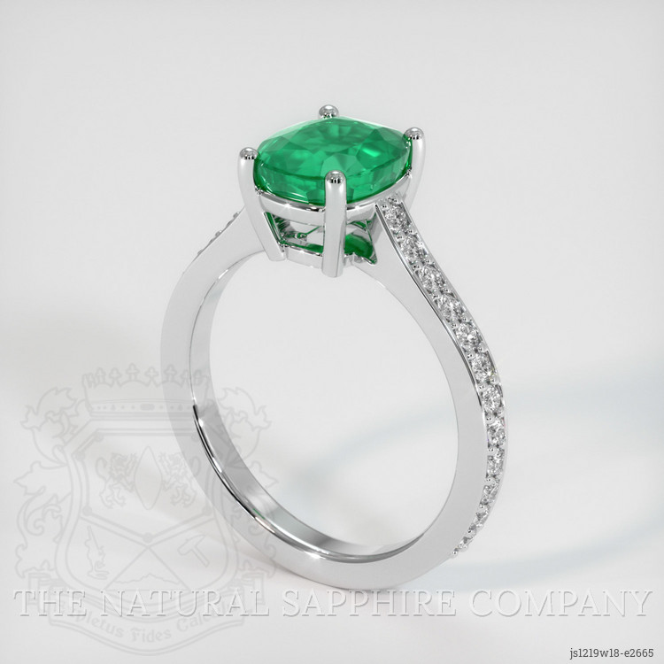 Pave Emerald Ring 1.82 Ct., 18K White Gold