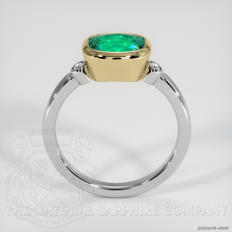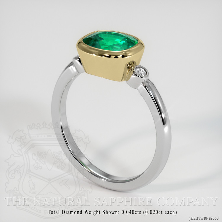 This emerald masterpiece is complemented by the subtle radiance of white round diamonds, weighing approximately 0.04 carats, masterfully embedded in 18K yellow and white gold. The meticulous clarity grade of VS1 and VS2, alongside a color grade of F, ensures these diamonds sparkle with unparalleled brilliance, their immaculate transparency highlighting the emerald’s rich green hue. The harmonious blend of 18K yellow and white gold setting creates a contrast that enhances the ring's allure and sophistication, catering to the refined taste of connoisseurs who seek a blend of classic and contemporary art in their jewelry.