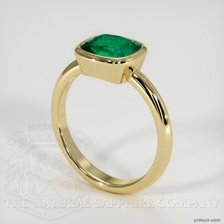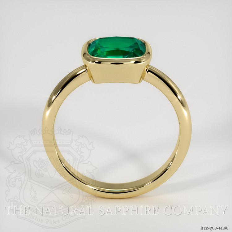 The emerald is securely held in place by a solid bezel setting, designed to offer maximum protection for the gemstone while maintaining its aesthetic appeal. This type of setting surrounds the gem with a gold rim, encapsulating it on all sides and safeguarding it from potential damage. It provides peace of mind for the wearer, knowing that this precious gemstone is well protected.