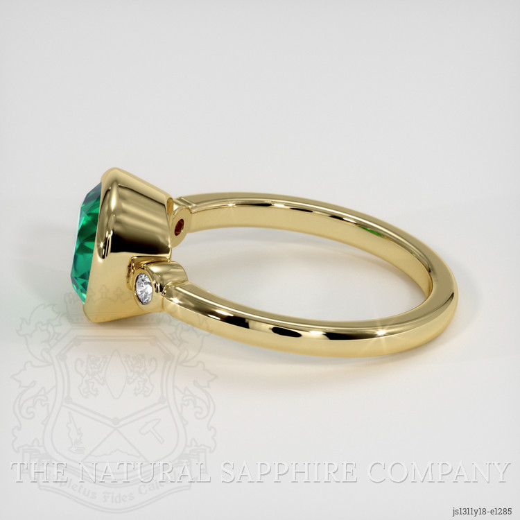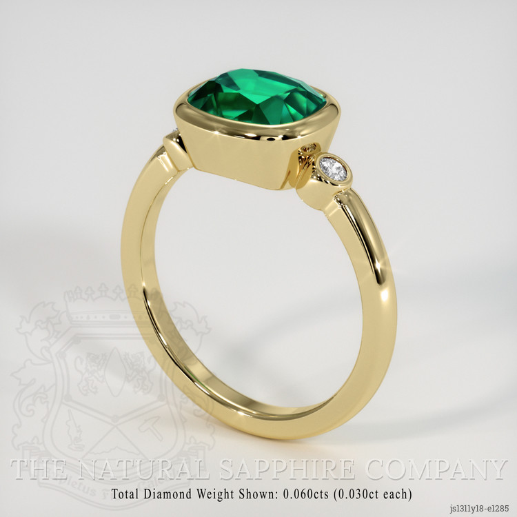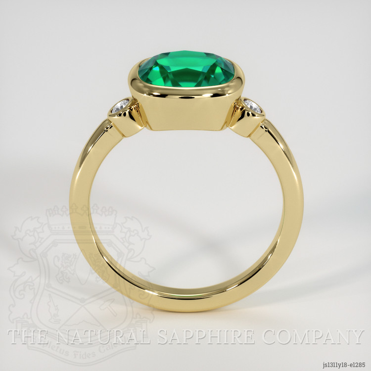 From casual daytime gatherings to grand evening events, this ring adapts seamlessly, becoming a cherished part of any wardrobe. Set in luxurious 18K yellow gold, it carries the warmth and radiance reminiscent of a sunny afternoon, adding a subtle touch of sophistication to any attire. Whether paired with a simple dress or an elegant gown, the versatility of this masterpiece enhances your style with grace and poise. Surrounding the emerald are delicately set white round diamonds totaling approximately 0.06 carats. With a clarity of Very Slightly Included and a color grade of F, these diamonds create a dazzling halo that highlights the emerald's deep green allure, drawing admiration and awe.