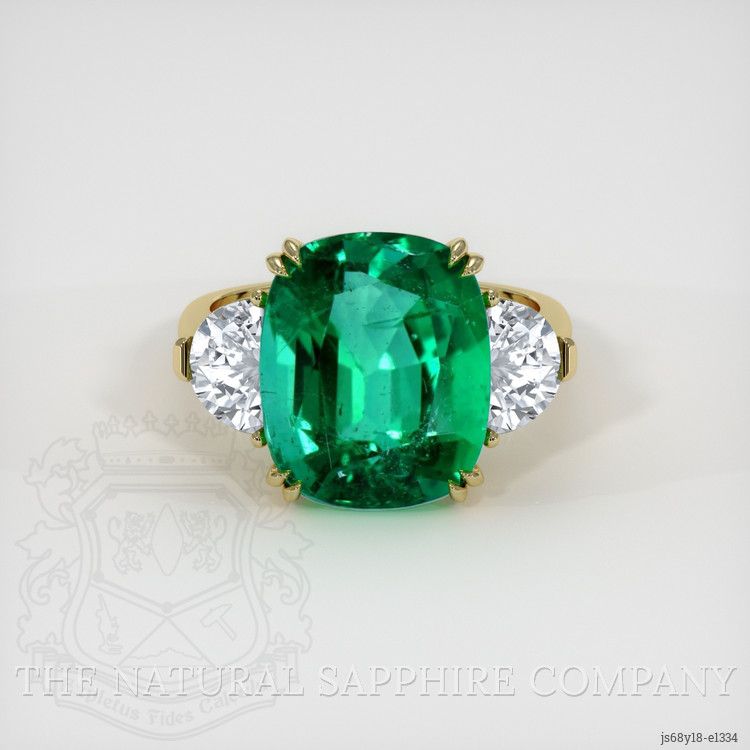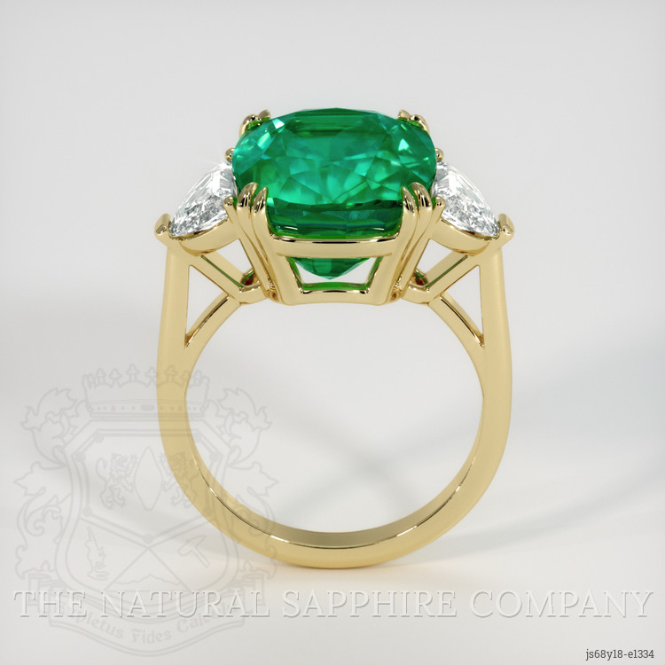 Three Stone Emerald Ring 10.48 Ct., 18K Yellow Gold