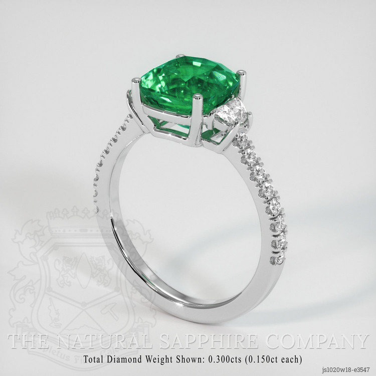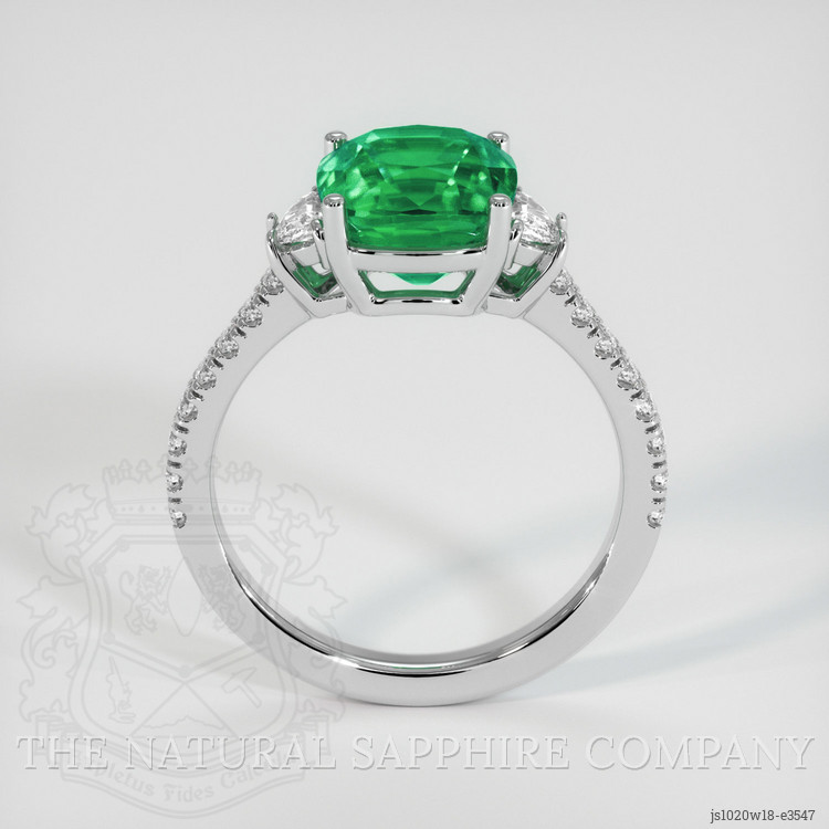 Discover the exquisite beauty and timeless elegance encapsulated in our standout piece from The Natural Emerald Company. This ring is not just a piece of jewelry; it's a symbol of everlasting love and commitment. At its heart lies a stunning 2.82 carat cushion-shaped green emerald, masterfully crafted with a mixed brilliant cut to ignite its vivid color saturation. Its transparency and very slight inclusions promise unmatched clarity, allowing light to dance effortlessly across its surface.
