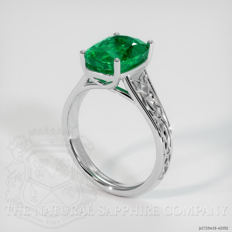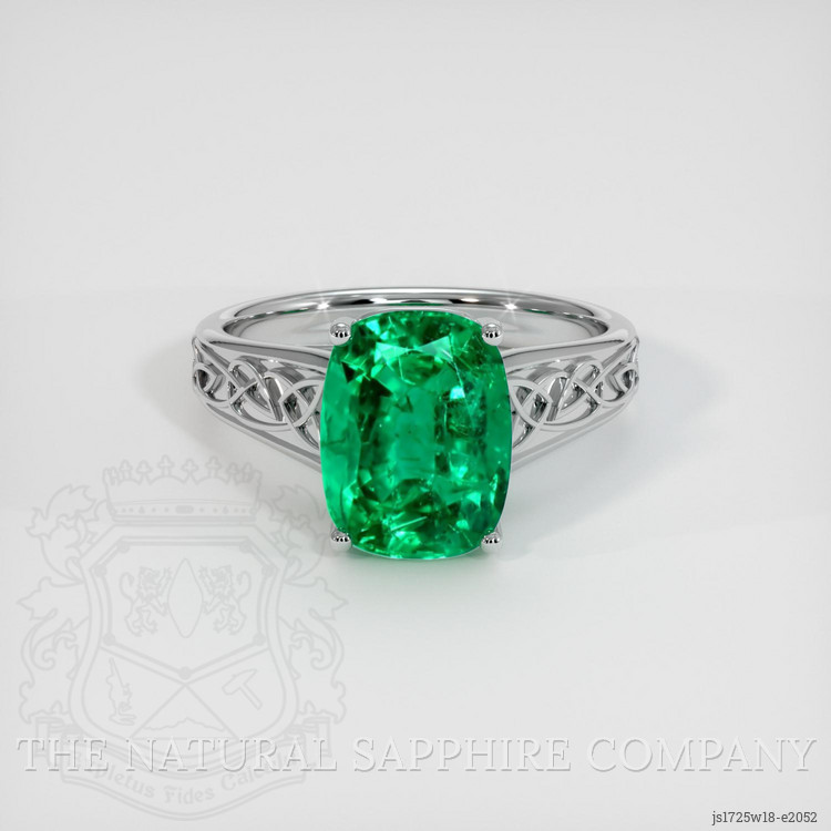 Celtic Emerald Ring 2.96 Ct., 18K White Gold