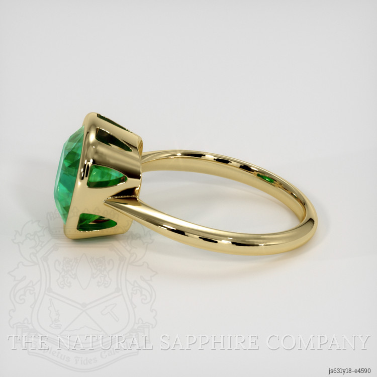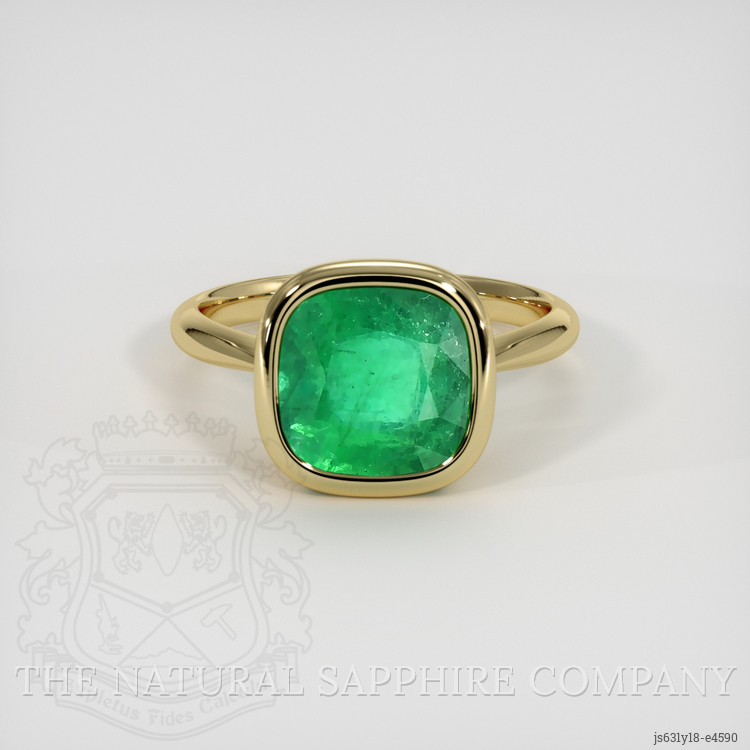 To hold this ring is to possess a rare conversation between nature and the highest standards of human craft, an offering reserved for those who understand the quiet power of singular beauty. Presented by The Natural Emerald Company, this piece centers on a transparent three point two three carat cushion shaped green emerald, measured at eight point seven nine by eight point seven eight by six point three two millimeters, originating from Zambia. The gem displays medium color saturation that sings against the warm embrace of an entirely eighteen karat yellow gold setting, a metal choice that elevates the stone without competing with its natural green, a setting conceived for both security and timeless elegance. This ring is not mass produced, it is a limited opportunity to own a jewel that reads as refined, uncommonly expressive, and destined to be a treasured hallmark in a discerning collection.
