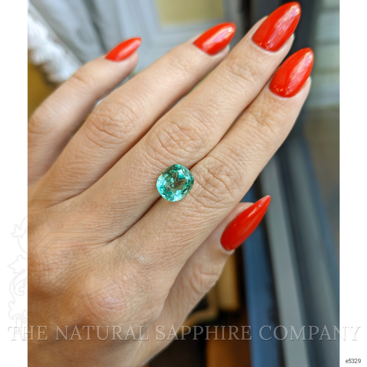 Discover the epitome of luxury and elegance with this exquisite ring featuring a remarkable 3.26 carat green Colombian emerald. The gem's cushion shape and mixed brilliant cut illuminate its vibrant, transparent beauty. Measuring 9.59 x 8.53 x 6.46 mm, this emerald's very very slightly included clarity grade, evaluated at eye level, ensures that its natural allure shines impeccably. With medium color saturation and an excellent polish, the emerald's origin from Colombia, renowned for producing the finest emeralds in the world, adds an additional touch of exclusivity.
