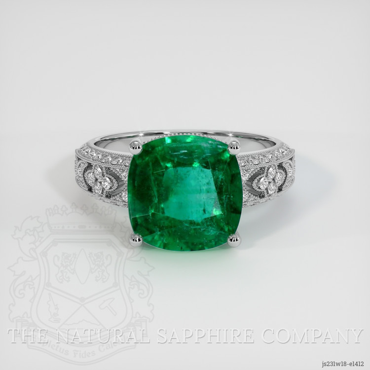Imagine capturing a timeless moment of love and elegance, wrapped in the vibrant glow of nature's finest wonders. The exquisite green emerald ring from The Natural Emerald Company is not just a piece of jewelry, but a symbol of unforgettable memories and cherished occasions. At the heart of this captivating ring lies a 4.27 carat cushion-shaped emerald, sourced responsibly from the rich lands of Zambia. With its transparent beauty and mixed brilliant cut, this gem paints a mesmerizing picture of natural allure. Measuring 10.58 x 10.52 x 6.51 mm, it proudly showcases a symphony of vivid color saturation, breathing life and vitality into every glance it captures.