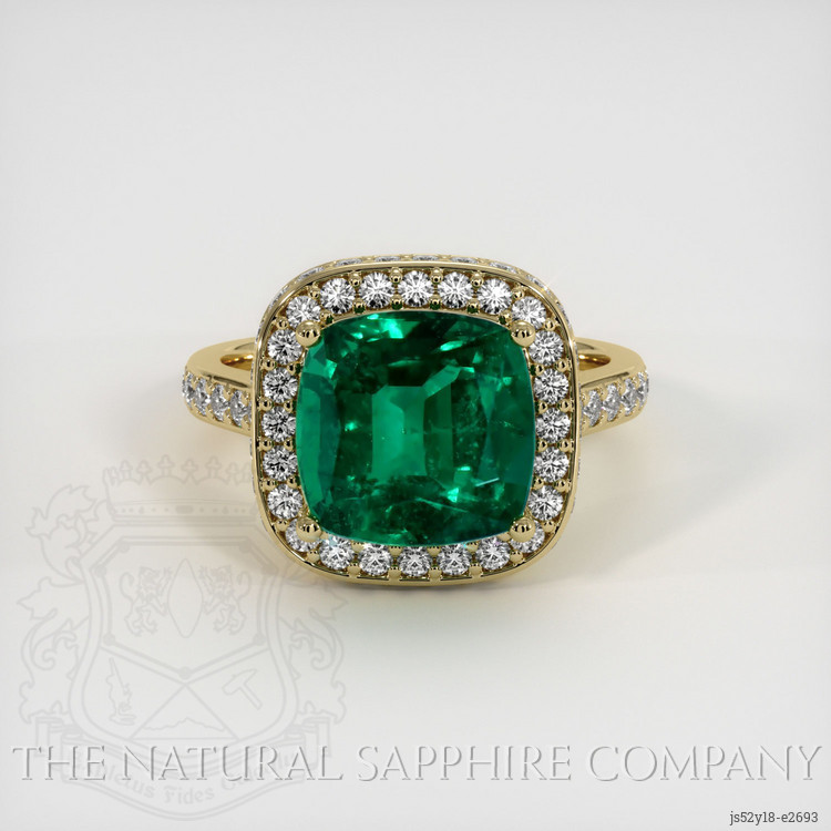 Pave Emerald Ring 4.39 Ct., 18K Yellow Gold