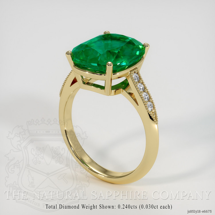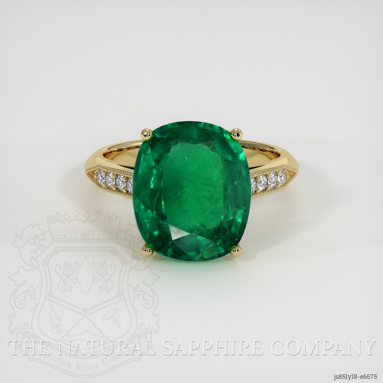 Introducing an exquisite piece from The Natural Emerald Company: a stunning ring featuring a remarkable 5.87 carat cushion-shaped green emerald. With dimensions of 12.70 x 10.69 x 6.37 mm, this gem captivates with its transparent beauty, enhanced by a mixed brilliant cut that maximizes its brilliance and fire. The emerald possesses a clarity grade of very slightly included, evaluated at eye level, ensuring that any inclusions are minimal and do not detract from its overall allure. Its vivid color saturation is exceptional, offering a rich and vibrant green hue that is desired by connoisseurs and collectors alike. The emerald is masterfully polished to an excellent finish, highlighting its natural beauty and enhancing its value. Sourced ethically from Zambia, a renowned location for exquisite emeralds, this gemstone is a testament to responsible mining practices that ensure environmental sustainability and fair labor conditions.