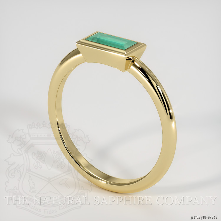 In the hands of our master cutters and jewelers the rough crystal found new purpose, taking an emerald cut that honors both the gem and the wearer. Cut to precise dimensions, 6.84 x 3.48 x 2.80 mm, the step facets of the emerald cut emphasize linear clarity and a calm interplay of light. The clarity grade is recorded as very very slightly included when viewed at eye level, a testament to the careful selection and cutting that preserves the stone's transparency and inner life. An excellent polish gives each facet a subtle mirror like finish, allowing the soft green to breathe with steady flashes rather than scattered brilliance. Standard enhancement has been applied in accordance with long established lapidary practice, enhancing durability and aesthetic integrity while remaining true to the gem's natural character. The setting is a study in restrained elegance, an 18K yellow gold bezel that frames the emerald as if it were a small window. This choice secures the stone, protects its girdle, and complements the green with the warm, timeless glow of classic gold.