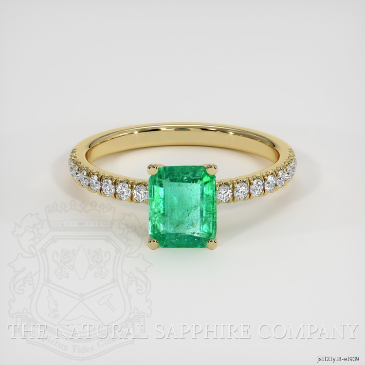 Pave Emerald Ring 0.68 Ct., 18K Yellow Gold
