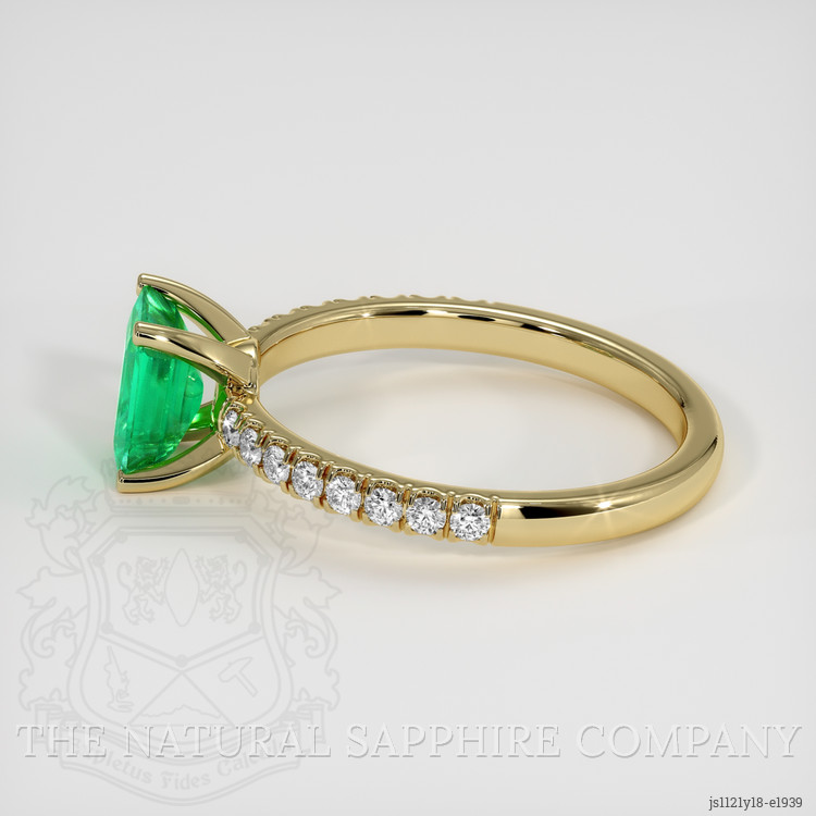 Constructed from 18K yellow gold, the ring offers an understated yet luxurious appeal, characterized by the classic warmth of gold. The choice of 18K gold ensures both durability and a lustrous finish, securing the gemstones elegantly within the setting. This precisely measured and executed combination of emerald, diamonds, and gold reflects the quality craftsmanship The Natural Emerald Company is renowned for, rivaling that of esteemed luxury jewelry brands known for their exceptional design standards.