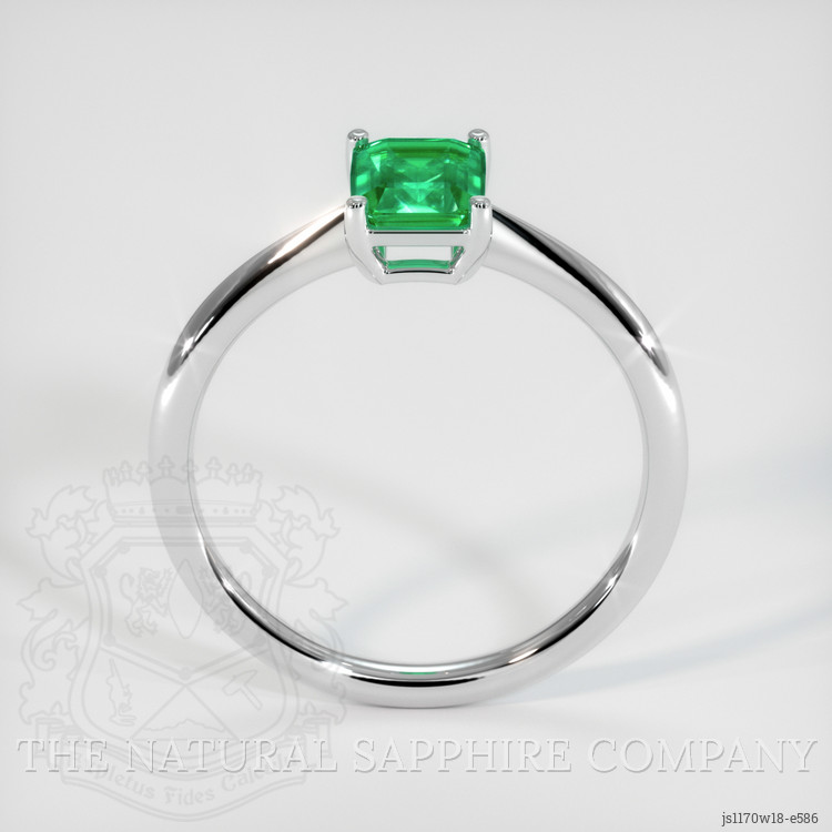 The ring features a beautiful, transparent 0.72 carat emerald cut shape green emerald with the dimensions of 6.97 x 4.91 x 2.93 mm and a emerald cut. It has a clarity grade of slightly included (evaluated at eye level), light color saturation, and an excellent polish. The origin of this emerald is Zambia.