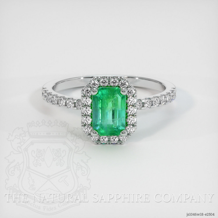 Pave Emerald Ring 0.74 Ct., 18K White Gold