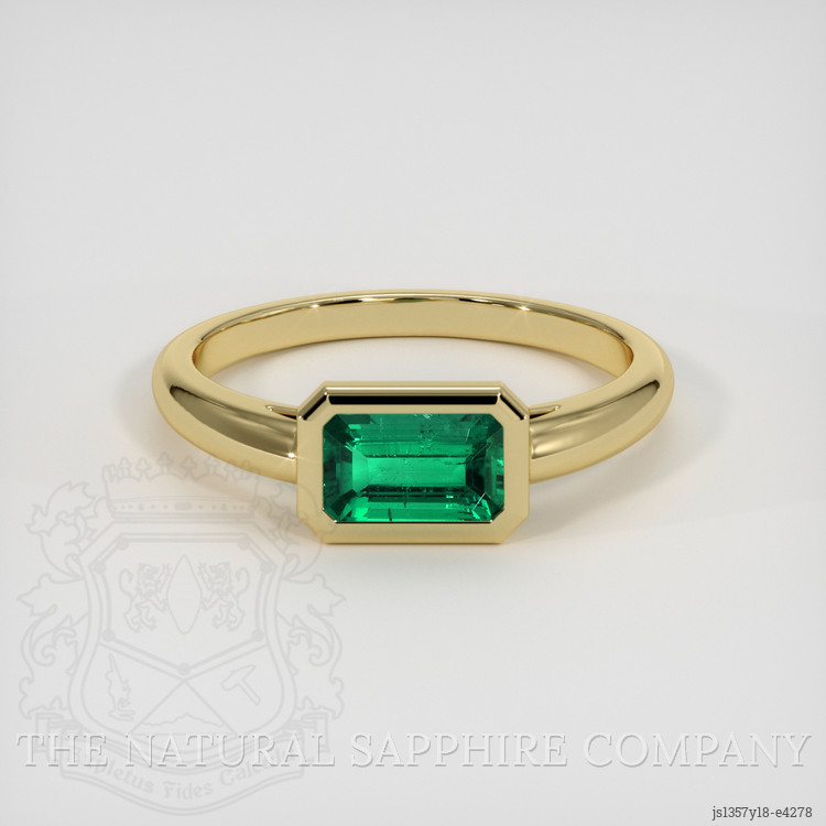 This men's ring from The Natural Emerald Company presents a rare, transparent 0.78 carat emerald cut emerald, a stone whose presence is immediately unmistakable, a vivid green that reads as both bold and refined, dimensions seven point zero four by four point five two by three point two eight millimeters, a clarity grade of very slightly included evaluated at eye level, an excellent polish, and a standard enhancement consistent with the finest Zambian material, a provenance prized for its depth and hue. Crafted entirely in 18 karat yellow gold, this design is pared back and purposeful, the stone seated in a low bezel setting that allows light to enter the emerald while preserving its lines and geometry, a silhouette intended for the discerning man who values restraint and pedigree. The Natural Emerald Company sources and hand selects each gem in small quantities, and because no two natural emeralds from Zambia are ever identical, owning this ring is to claim a singular expression of nature and expert lapidary work, a piece reserved for a close circle of collectors who appreciate authentic origin, superb polish, and a color saturation rarely seen at this size.