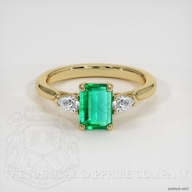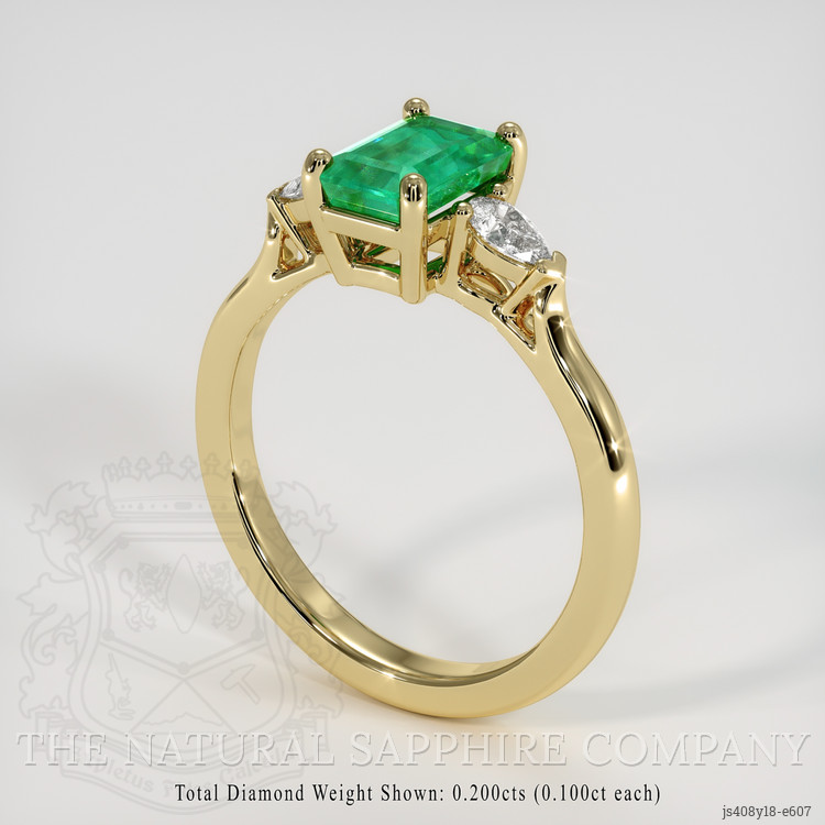 Three Stone Emerald Ring 0.78 Ct., 18K Yellow Gold