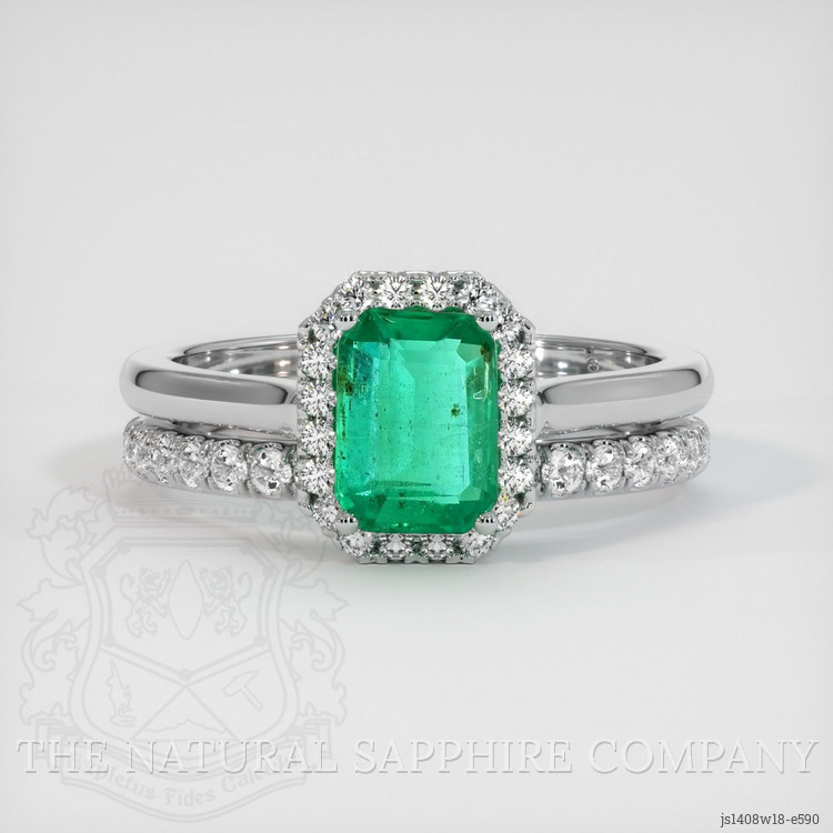 Pave Emerald Ring 0.82 Ct., 18K White Gold