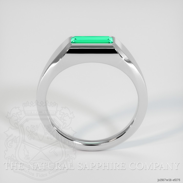 In the realm of timeless tales and whispered promises, where dreams dance on moonlit paths, emerges a masterpiece from the heart of nature's opulence. Presenting our exquisite men's ring, crafted by the artisan hands at The Natural Emerald Company, where the emeralds whisper tales of elegance and grace. At the heart of this creation lies a gem that beckons with the allure of ancient forests—an emerald, transparent and pure, cradled in an emerald shape with dimensions of 9.03 x 4.10 x 2.96 mm. This 0.82 carat treasure, sculpted with the precision of an emerald cut, catches the eye with its medium color saturation and excellent polish. It gleams with a clarity that hints at mysteries within, telling tales unseen with its very very slightly included grade.