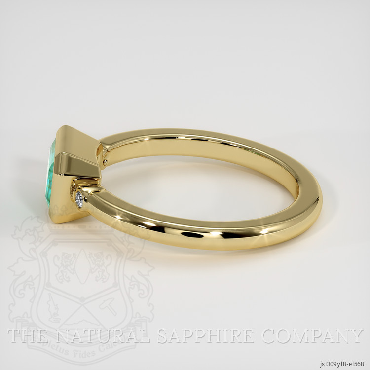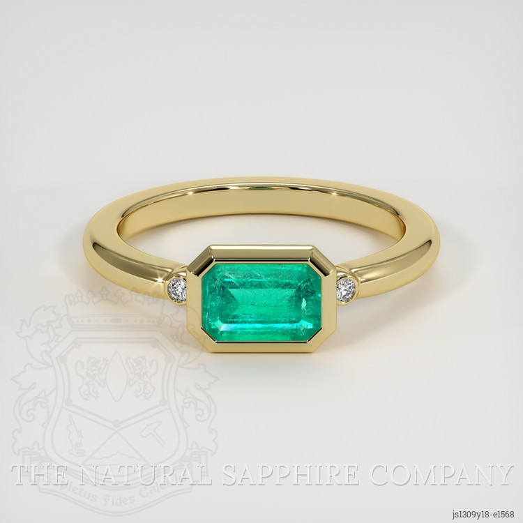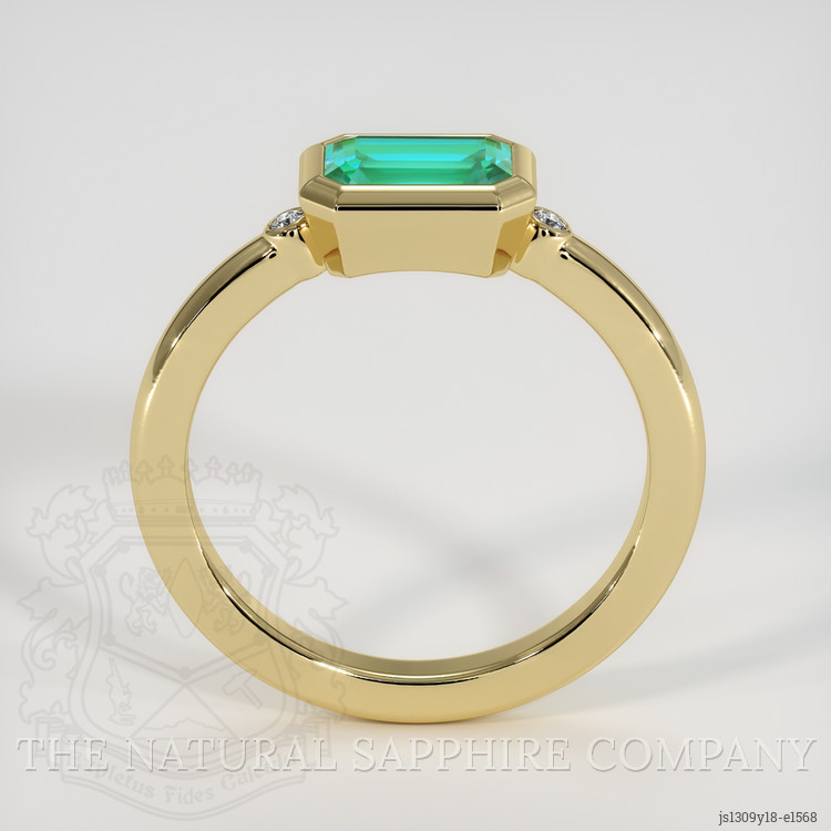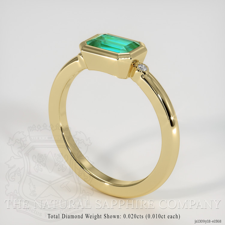 Enhancing the emerald’s allure are two white round-shaped natural diamonds, weighing approximately 0.02 carats each. These diamonds possess a clarity grade of Very Slightly Included (VS1, VS2) and a color grade of F, ensuring they radiate with breathtaking sparkle. Set in luxurious 18K yellow gold, the contrast between the rich verdancy of the emerald and the pristine diamonds creates a harmonious symphony of color and light. This ring isn't just an accessory; it's a masterpiece that speaks of commitment and elegance with every glance.