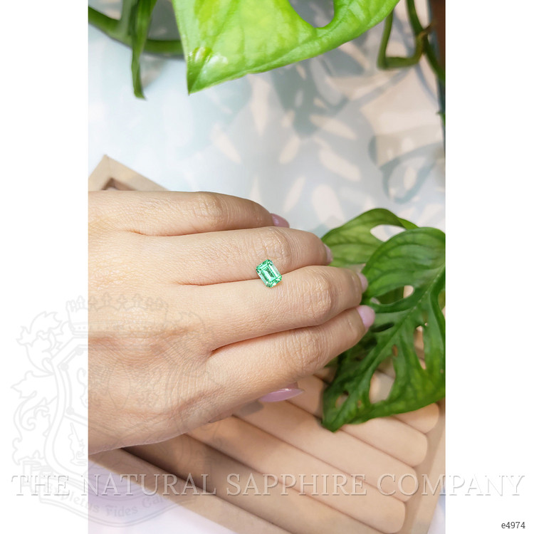 Discover the timeless elegance of our exquisite emerald ring, a flawless creation by The Natural Emerald Company. This captivating piece features a stunning, GIA certified, 1.00 carat emerald cut green emerald. With its origins nestled in the rich lands of Russia, the emerald is not just a gemstone but a piece of history. Exhibiting dimensions of 6.97 x 5.00 x 3.90 mm, it embodies a medium intense color saturation that whispers tales of ancient opulence. Its very slightly included clarity, evaluated at eye level, highlights the gem's authentic beauty and allure without overshadowing its natural elegance. This emerald requires no enhancement, emphasizing its genuine charm and impeccable quality, making it a treasured artifact of nature.