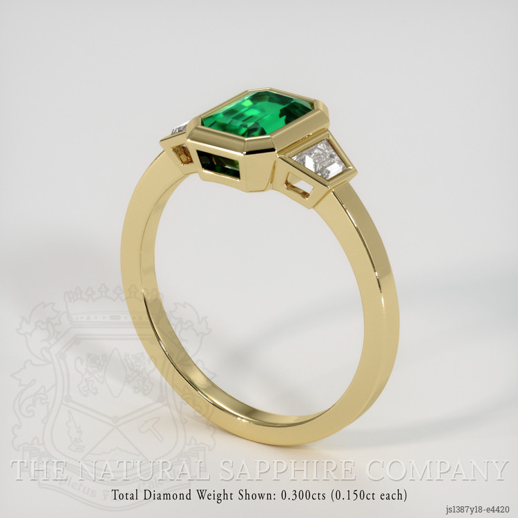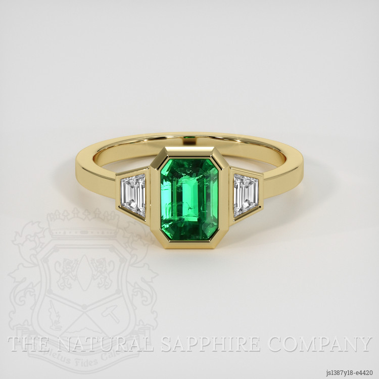 Three Stone Emerald Ring 1.08 Ct., 18K Yellow Gold