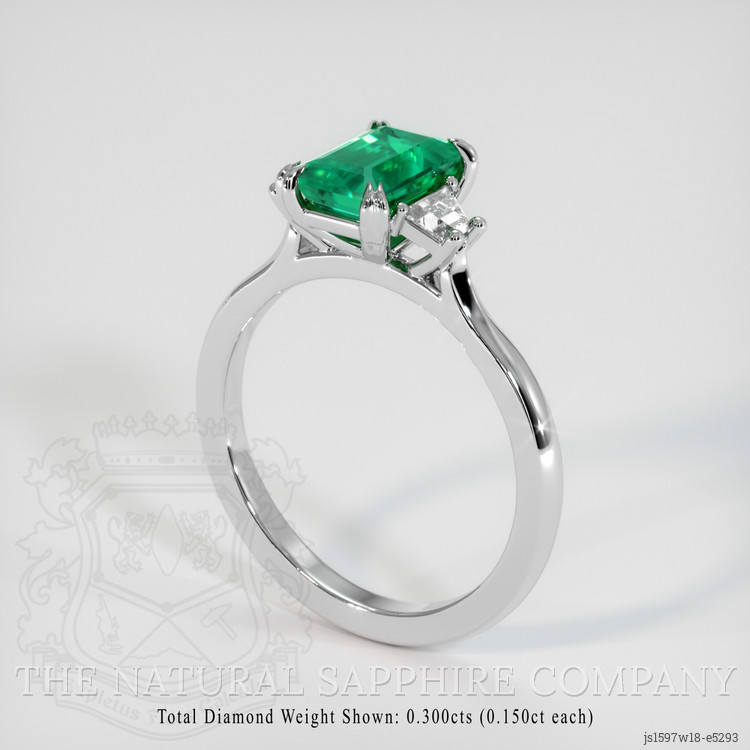 Three Stone Emerald Ring 1.20 Ct., 18K White Gold