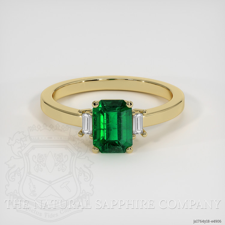 Three Stone Emerald Ring 1.22 Ct., 18K Yellow Gold