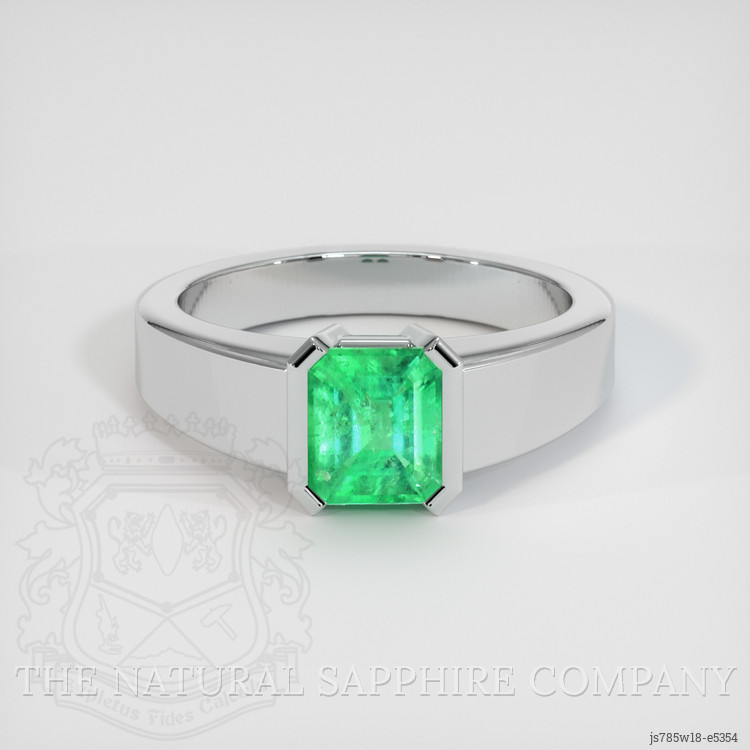 Immerse yourself in a world where elegance meets profound emotional resonance, a place where beauty becomes a testament to personality and individuality. Our exquisite men's ring from The Natural Emerald Company captures more than just admiring glances; it reflects the inner soul of its wearer. Once it adorns a finger, this ring is not merely an accessory but a statement of identity, a mirror reflecting bold characteristics, strength, and sophistication. The emerald at its heart is a gemstone with a storied history, boasting an exceptional emerald cut that magnifies its pristine allure. With dimensions of 6.97 x 6.16 x 4.30 mm, this 1.27-carat gem exudes an energy that speaks volumes, celebrating a clarity slightly included yet perfect when beheld by the human eye, telling a story of authenticity and unmatched beauty.