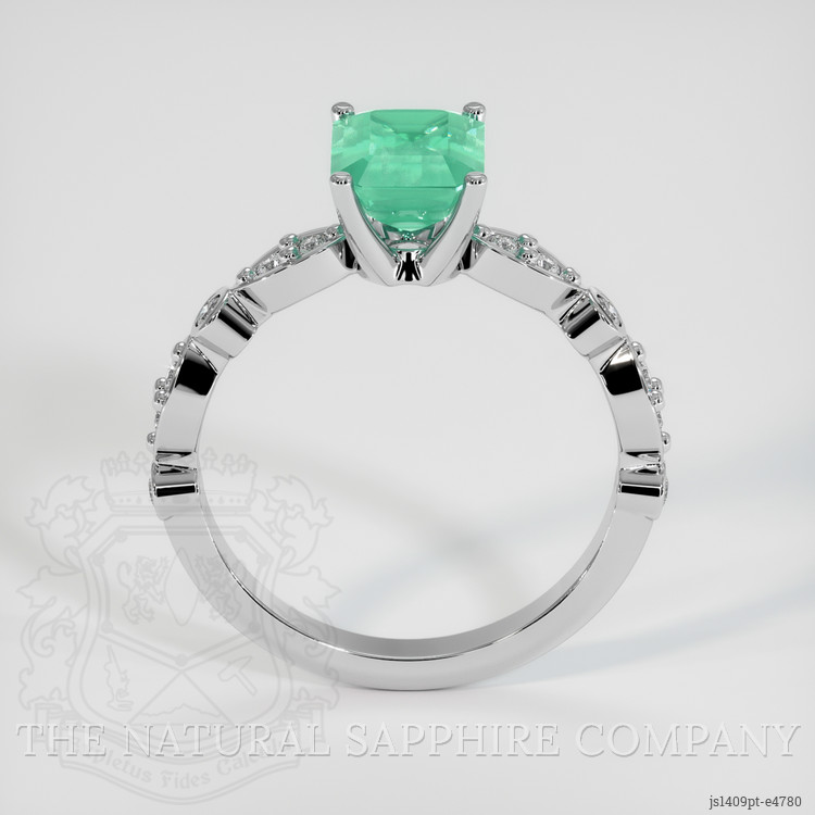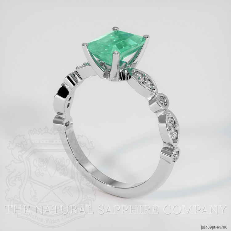 Set entirely in the luxurious sheen of platinum 950, the ring showcases an intricate design that ensures every facet of the stones refracts light in the most captivating manner. The smooth, polished band seamlessly encapsulates the gemstones, offering a harmony of strength and shimmering delicacy. The white platinum setting serves as the perfect backdrop, accentuating the vibrant green of the emerald and the dazzling sparkle of the diamonds. This ring is more than just a piece of jewelry. It is a testament to unrivaled craftsmanship and a celebration of the wearer's exquisite taste.