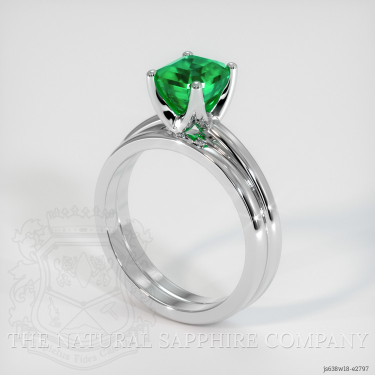 Wedding Set Emerald Ring 1.36 Ct., 18K White Gold