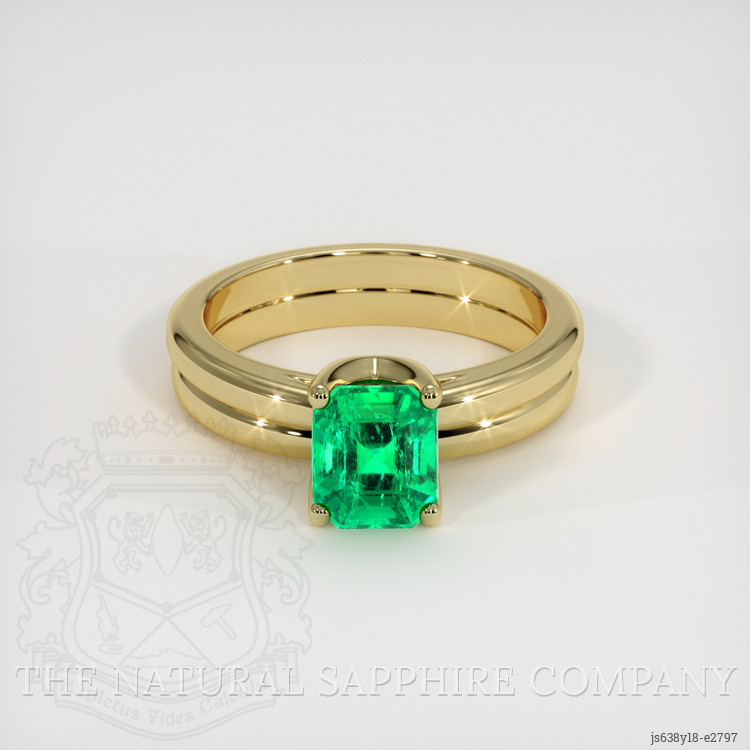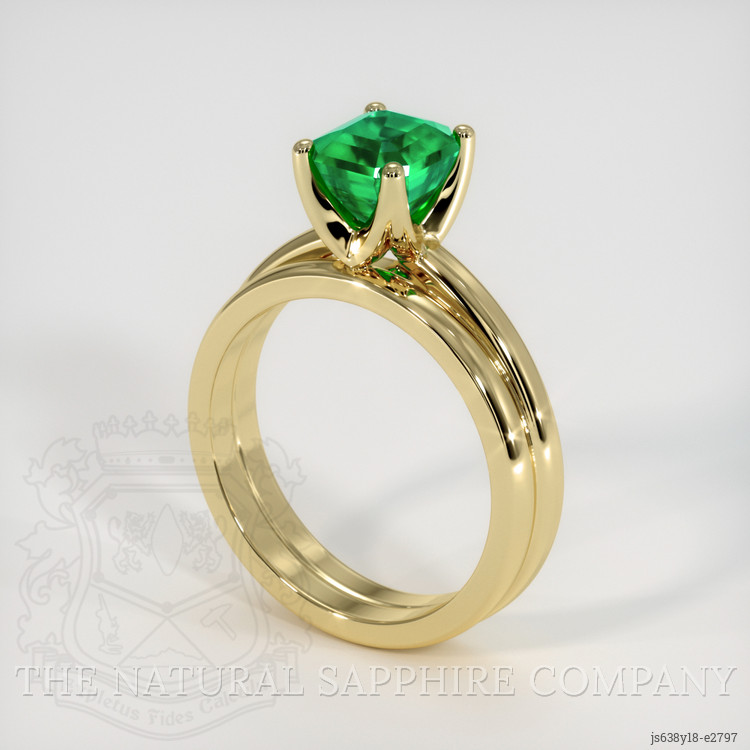Wedding Set Emerald Ring 1.36 Ct., 18K Yellow Gold