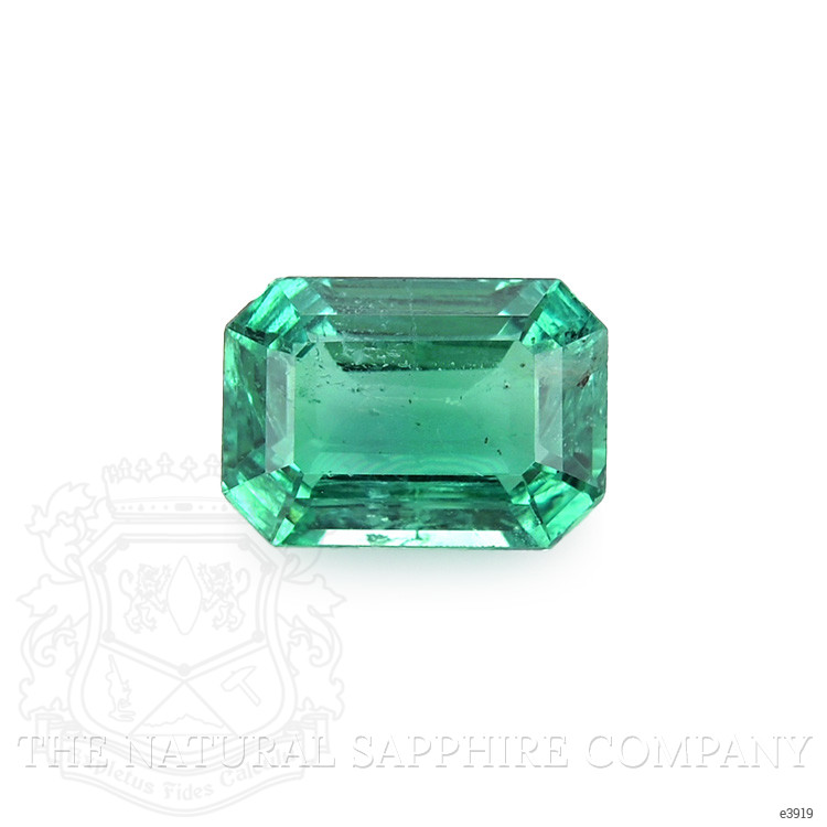 The ring features a beautiful, transparent 1.37 carat emerald cut shape green emerald with the dimensions of 7.77 x 5.52 x 4.15 mm and a emerald cut. It has a clarity grade of very slightly included (evaluated at eye level), light color saturation, and an excellent polish. The origin of this emerald is Zambia.